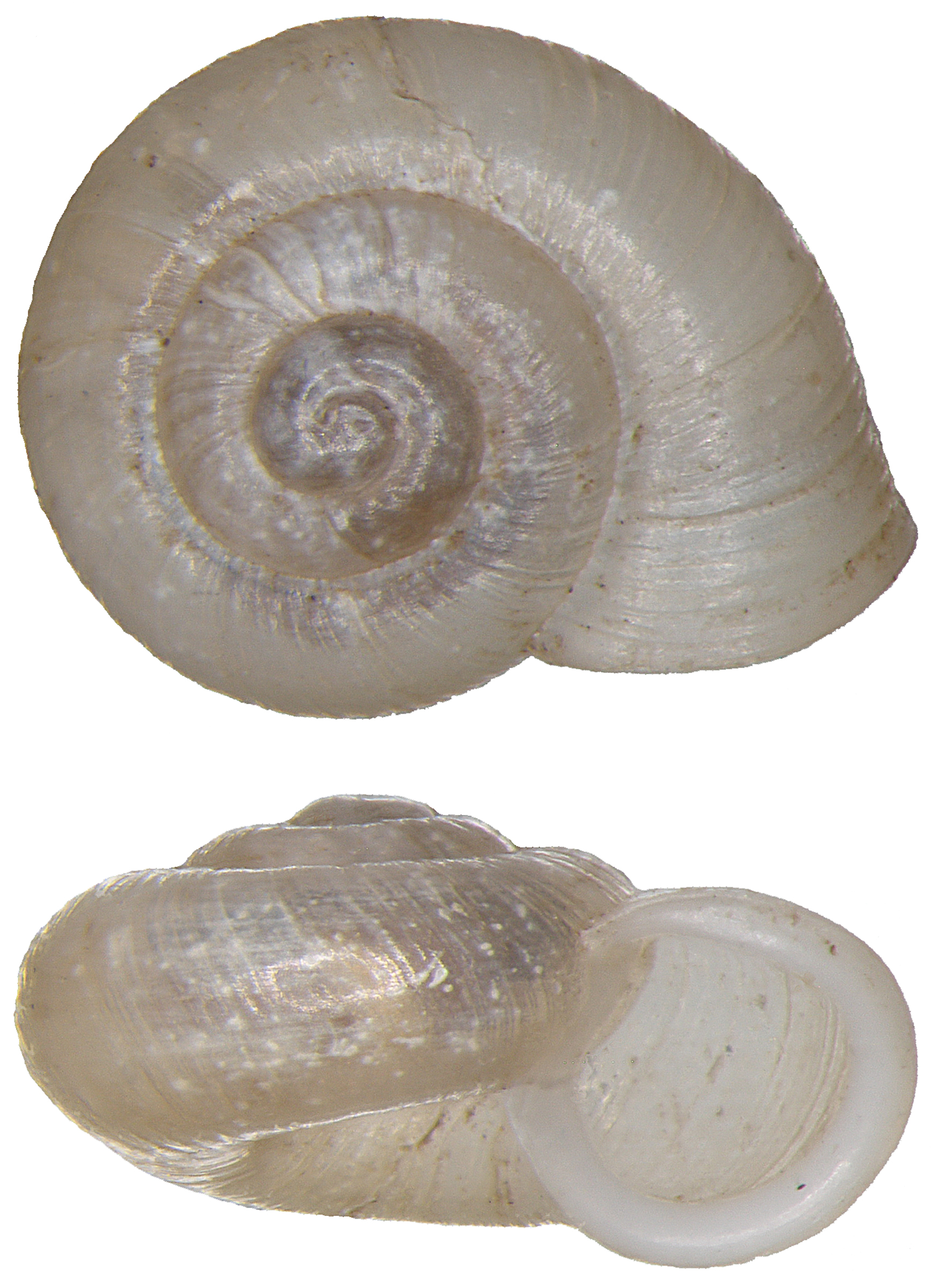 7. Vallonia pulchella, an aberrant shell development of V. pulchella due to parasite-induced castration.